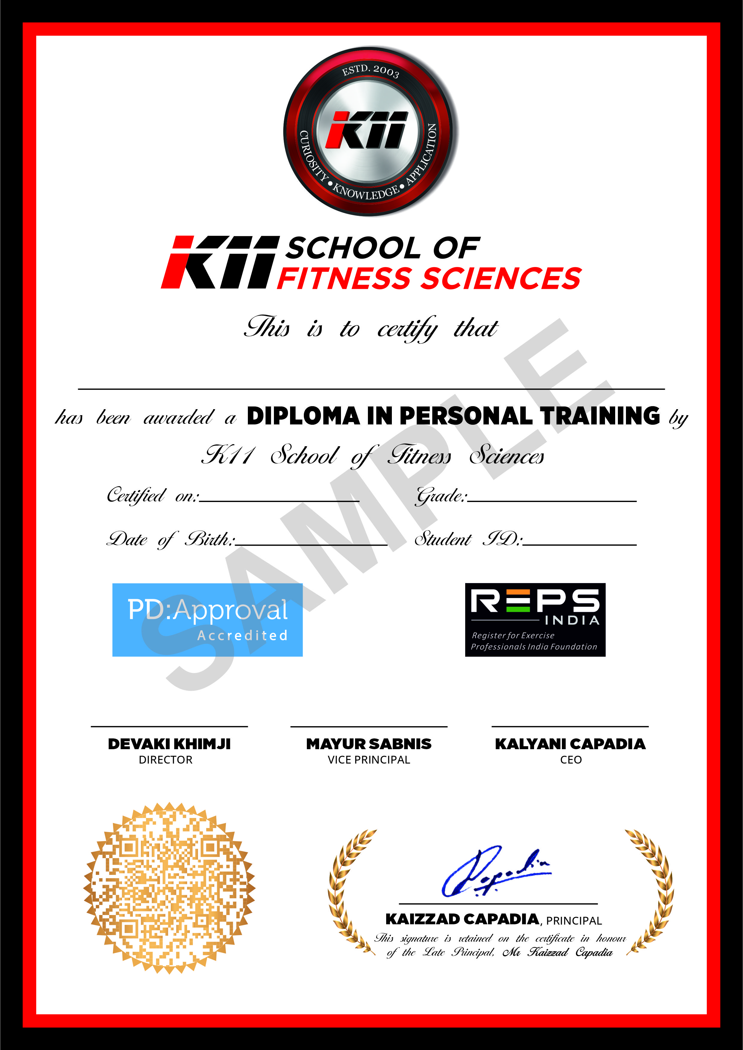 The course comes with certifications from K11 Diploma in Personal Training (DPT), NSQF Level 4, and Trauma Response, along with International Recognition, which includes an additional exam, certification, and global registration. With the Diploma in Personal Training certification, you gain practical skills that make you job-ready from day one. It also gives you the confidence to work not only in India but also in gyms and fitness centers abroad.