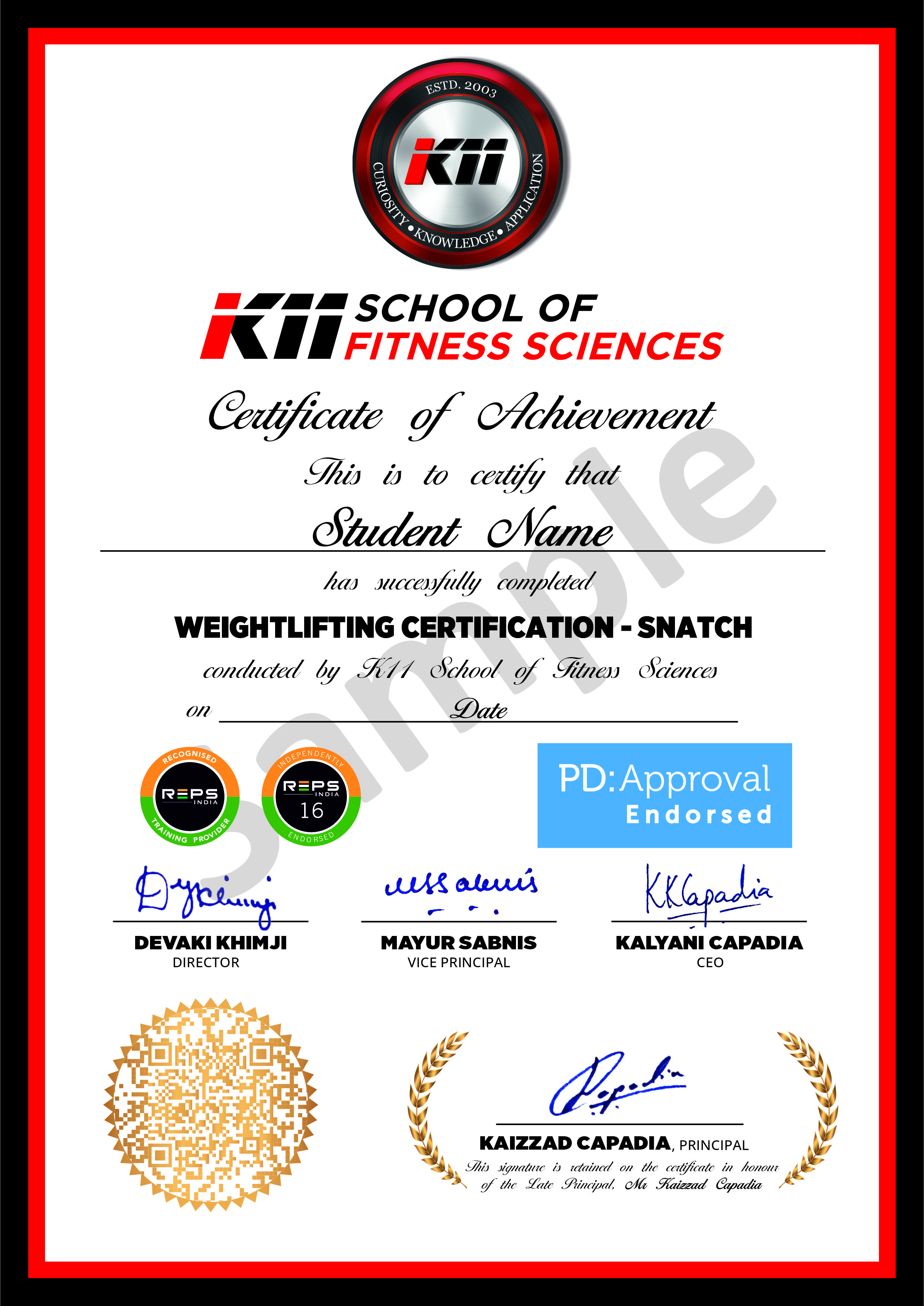- Certification: K11 Weightlifting: Snatch (16 REPS India CPD Points)